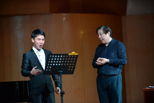 讲座中,赵登营教授对17级研究生杨依环、陈俊利等五名同学进行了现场指导,他首先肯定了我院在声乐教学上取得的成绩同时也对范唱同学的演唱进行了针对性的指导,赵登营教授强调作为声乐专业的学生要树立正确的声音观念,不断在舞台上锤炼自己,才能取得更大的进步。