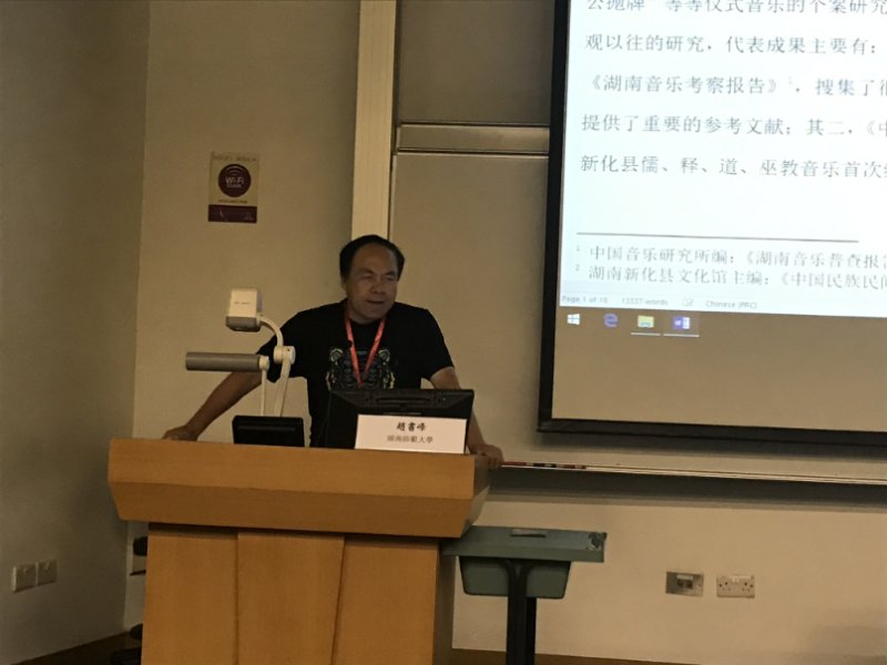 赵书峰教授做了《湘中民间仪式音声的‘在地化’与互文性研究》发言,他还担任了本次会议第四场的主持暨评议。