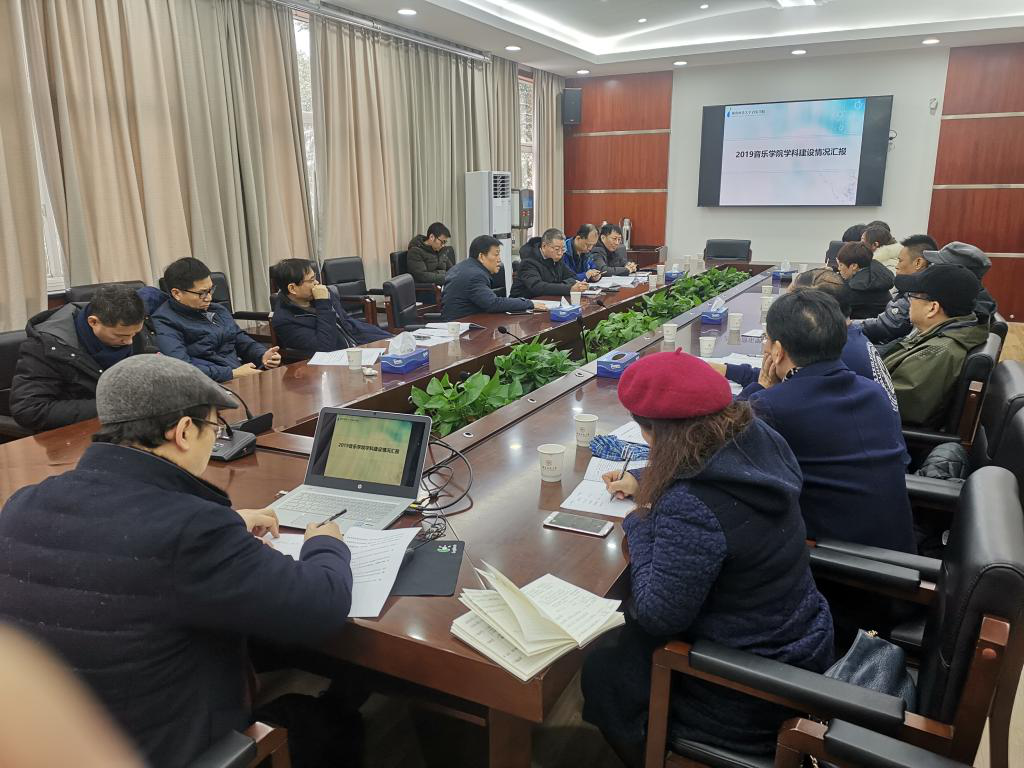 音乐学院所有班子成员和学院教授代表参加了此次会议,主管学科副院长夏雄军汇报了从2016年来音乐学院学科建设取得的成果、2019年的学科建设规划以及学科发展上面临的问题等。