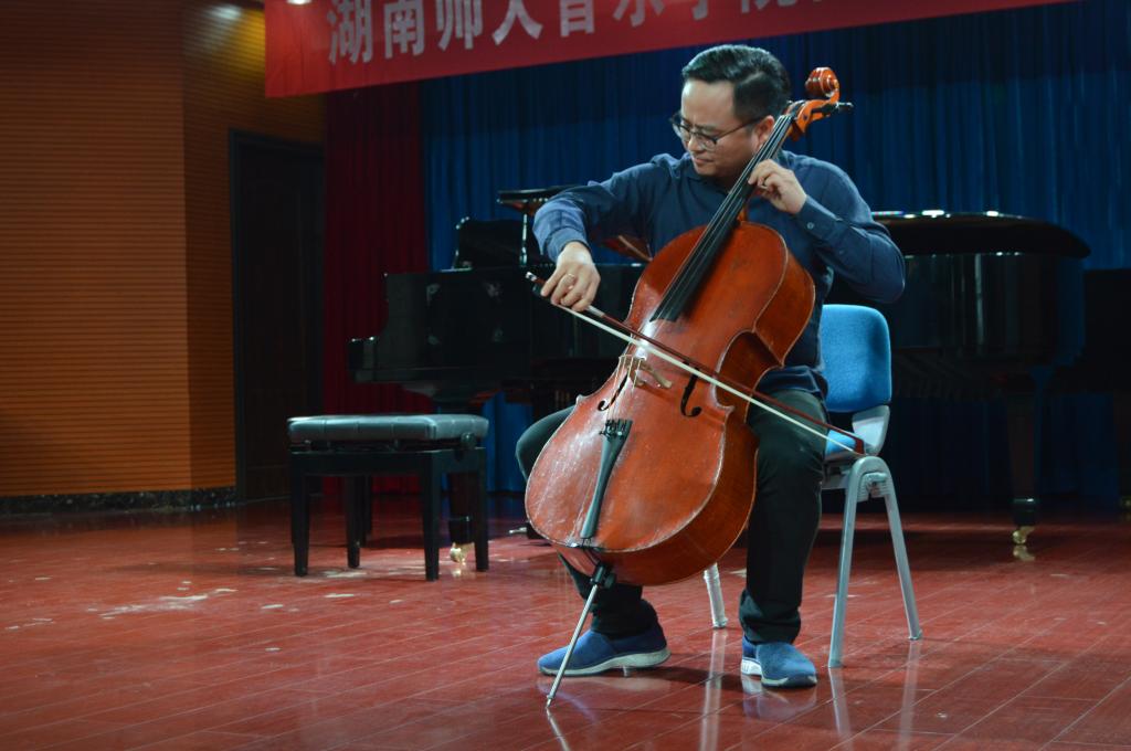 10月12日,湖南师范大学音乐学院2017年青年教师专业考核西洋乐专场在德乐楼411进行,本次考核特邀中国交响乐团首席演奏家刘志勇、曾晓明与音乐学院院长廖勇担任考核评委,音乐学院党委书记罗嵘、副院长夏雄军担任考核监制。