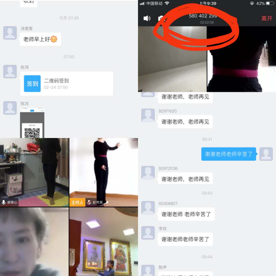(以下图片是舞蹈系各位老师开展线上教学的情况展示)