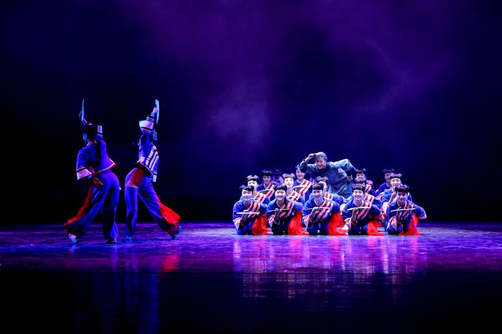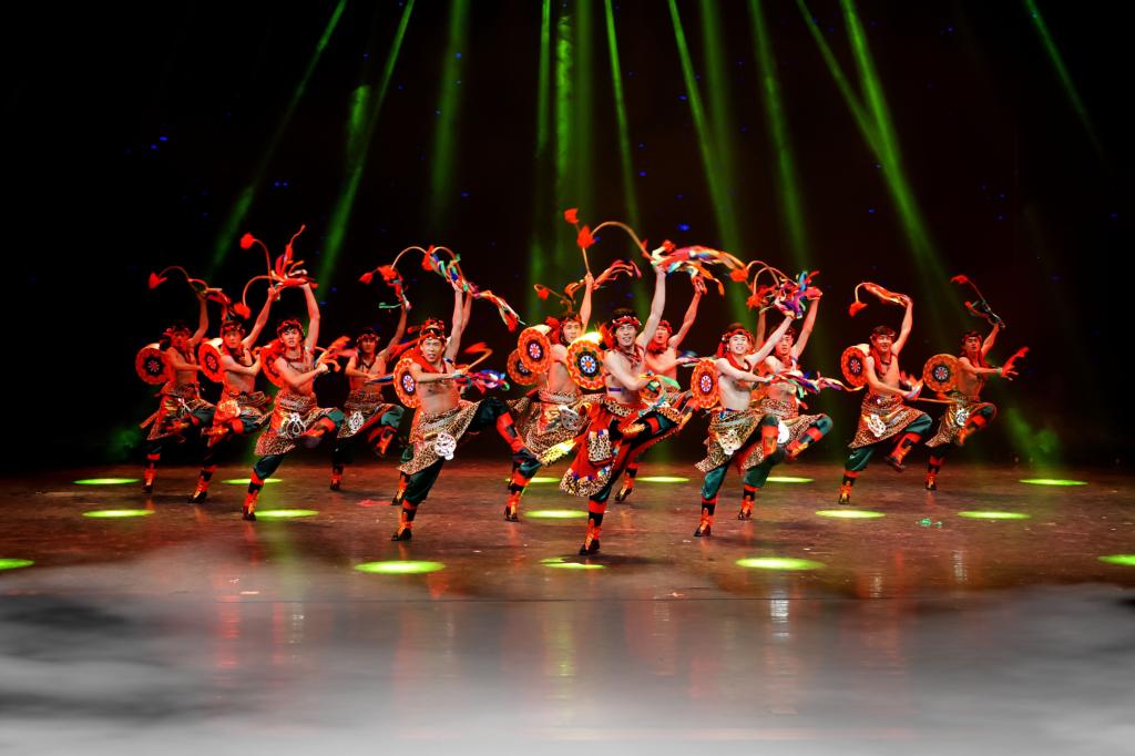 晚会在欢乐的鼓点声中拉开了帷幕,此次,音乐学院代表参演的作品有舞蹈系副教授王光辉指导的藏族男子群舞《离太阳最近的人》及王光辉、徐驰老师的原创作品女子群舞《女书往事》。