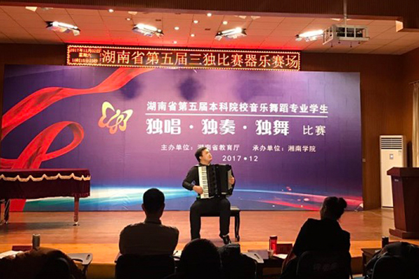 近日,由省教育厅主办、湘南学院承办的湖南省第五届普通高校音乐舞蹈专业学生独唱、独奏、独舞比赛(简称“三独”)在郴州举行。我校音乐学院学子在比赛中获得佳绩。