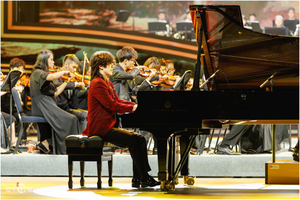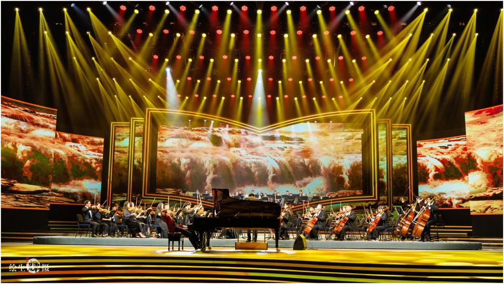 音乐学院青年钢琴教师、青年钢琴家周末与潇湘爱乐交响乐团在晚会中联袂演奏了《黄河》钢琴协奏曲第四乐章《保卫黄河》,乐曲引子是铜管乐奏出的号召似的战斗性旋律主题。音调中揉进的《东方红》动机象征毛主席党中央发出的战斗号召。