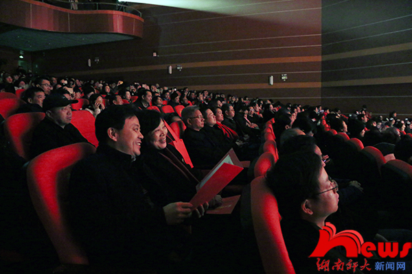 我校老领导、老同志代表,区级(含)以上党代表、人大代表、政协委员,省政府参事和党外代表人士,我校相关职能部门、附属单位负责人及师生代表共同观看了联欢会。