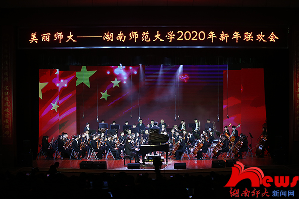 联欢会在音乐学院和附属小学带来的《灵鼠迎春》中拉开序幕。著名歌唱家王雅洁与音乐学院舞蹈系带来歌曲《多想为你唱支歌》,女高音配上优雅的舞蹈表达了对祖国的热情歌颂和赞美。附中教职工舞蹈团带来革命舞曲《映山红》,致敬了毛泽东同志不平凡的革命一生。我校国庆花车游行队成员带着舞蹈《难忘的时刻》展现了师大荣光。一曲由著名二胡演奏家陈军带来的《战马奔腾》令人陶醉,再现了守卫祖国边疆草原的骑兵战士为保卫祖国苦练杀敌本领的情景。我校女教职工带来舞蹈《神州大地春满园》,动作轻快,音乐明朗。洞庭美,美在景色,美在物产丰盛,更美在人文,钱树林教授带来的《洞庭鱼米乡》使人沉醉。随后,音乐学院舞蹈系带来的《盛唐印象》使大唐壮阔景象跃然舞台上,舞姿华丽而不失庄重。潇湘爱乐交响乐团演奏的《红旗颂》献礼新中国七十华诞,娓娓诉说对祖国的一片深情。