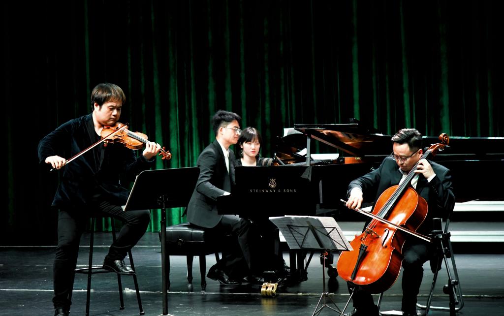 潇湘三重奏由青年大提琴演奏家、湖南师范大学音乐学院潇湘爱乐乐团团长、中外合作办学主任陈果副教授;环球签约音乐家、华中师范大学音乐学院副教授王凯平;湖南科技大学艺术学院青年教师彭斯特组成。三位演奏家均是留学于俄罗斯的音乐博士,精准的诠释俄了俄罗斯音乐的风格,受到了现场观众的广泛好评。