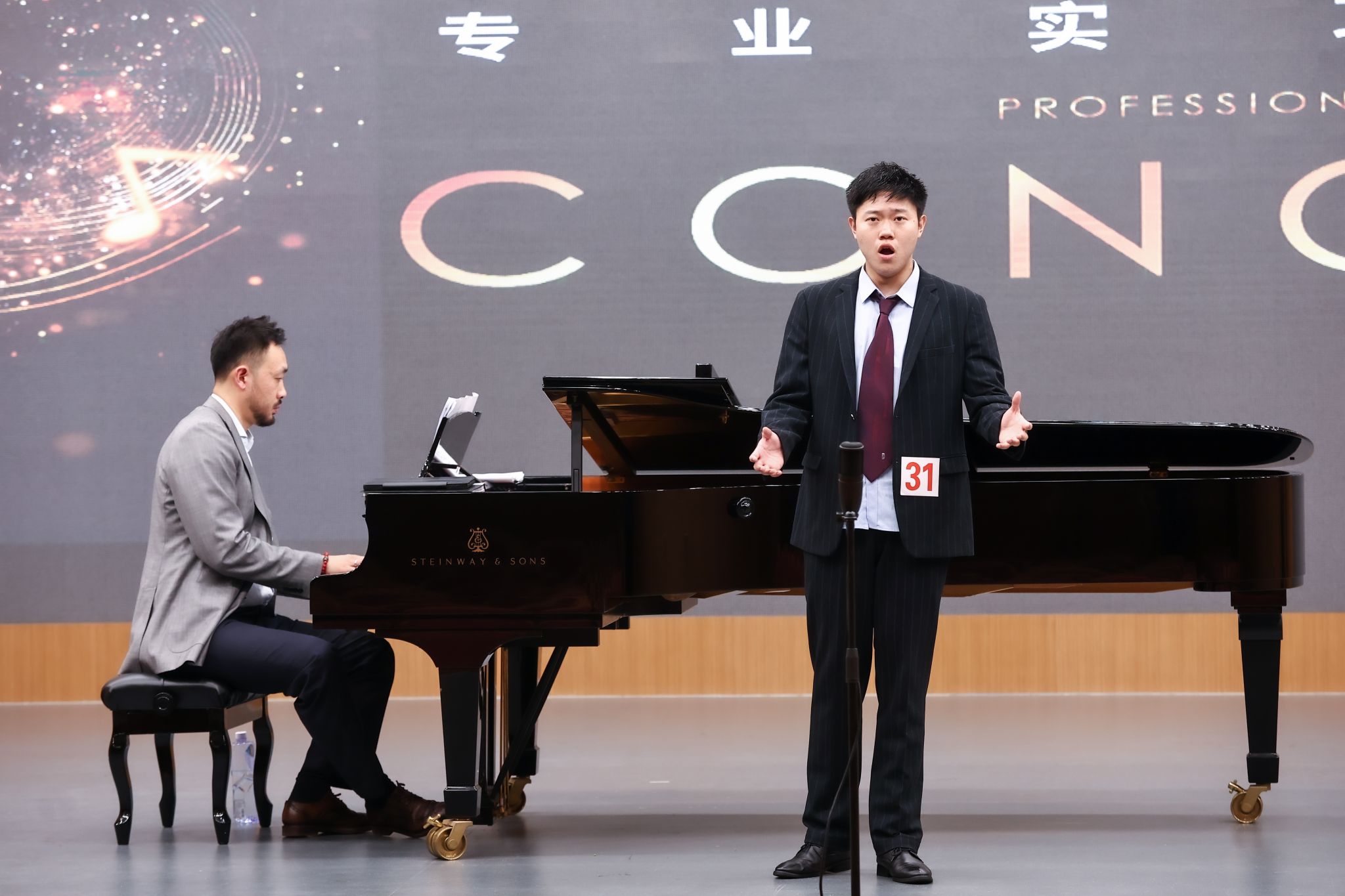 声乐专场作为本次音乐会的重要组成部分,更是以“声”动人,尽显风采。学子们凭借扎实的声乐功底,将艺术歌曲、民歌、歌剧选段等不同类型的作品演绎得淋漓尽致。有的嗓音清亮婉转,将中国传统声乐作品的韵味与诗意完美呈现;有的音色浑厚磁性,在演绎西方经典歌剧选段时尽显大气与张力;还有的凭借细腻的情感表达,让每一句唱腔都充满温度,直抵人心,其中王薇、王靖杰、周华轩三位同学的演唱更是惊艳全场。王薇演唱的《小锤又泛曾行路》《边境的小鸟》,将中国传统声乐作品的韵味与艺术歌曲的抒情性融合,嗓音清亮、咬字清晰,情感表达真挚动人,展现出对不同风格声乐作品的良好驾驭能力。王靖杰在演唱中,凭借扎实的声乐功底和对作品的深刻理解,将每一首歌曲的情感内核精准传递,其演唱的作品风格跨度大,却都能演绎得独具特色,舞台表现力极强。周华轩带来的《大江东去》《思乡》,以浑厚且富有磁性的嗓音,将古诗词的豪迈与思乡的柔情完美呈现,在声乐技巧与情感表达的结合上表现出色,让观众深深沉醉在声乐艺术的魅力之中。他们的精彩演唱,是声乐专业实力的直观体现,也为本次系列音乐会画上了圆满的句号。