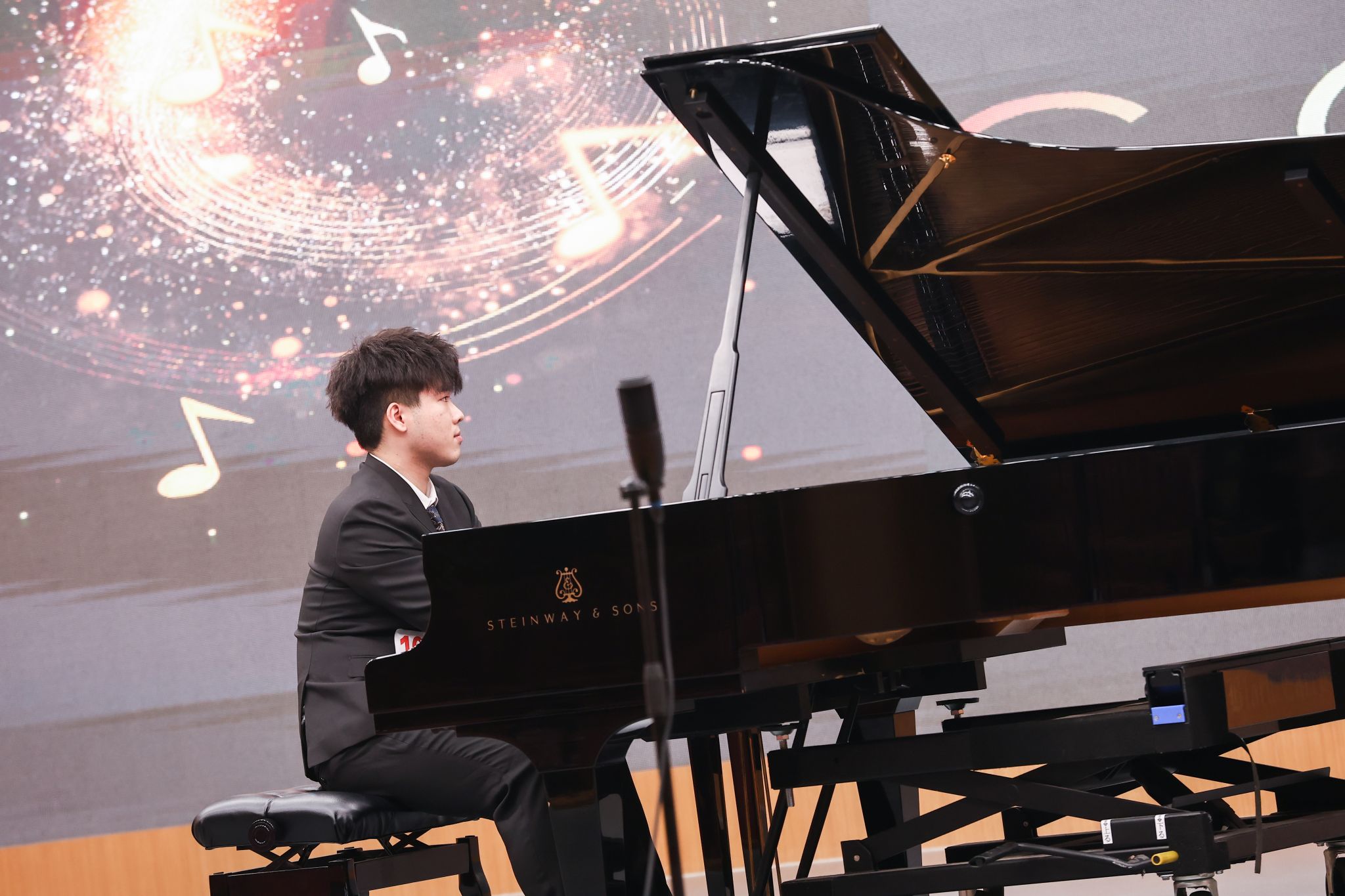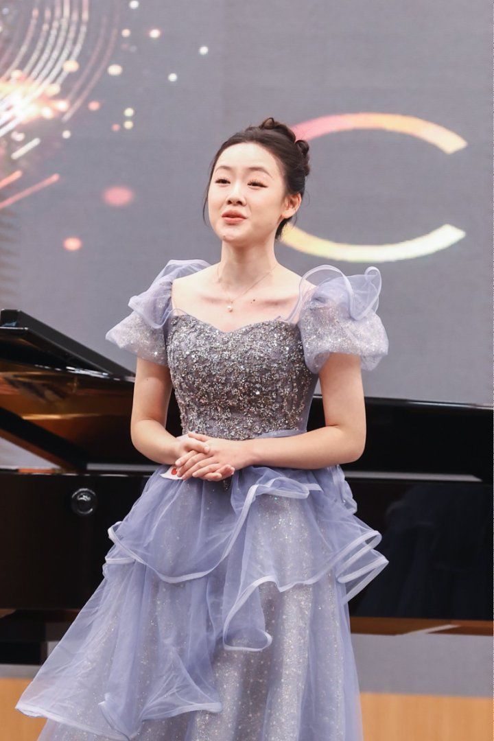 钢琴专场的演出同样精彩纷呈,黑白琴键在学子们的指尖下仿佛被赋予了生命,流淌出风格各异的动人旋律。从古典主义的严谨规整,到浪漫主义的抒情细腻,再到印象主义的朦胧灵动,学子们凭借极强的手指控制力与音乐表现力,在不同风格的作品间自如切换。激昂处,琴音铿锵有力、节奏明快,尽显张力;舒缓时,旋律婉转柔和、意境悠远,引人遐想。黄昕垚、刘柯含、曾小维三位同学凭借出色表现,成为全场焦点。黄昕垚演奏的《轻盈》(李斯特曲)与《革命练习曲》(肖邦曲),在快速的音阶跑动和强烈的节奏对比中,展现出极强的手指控制力和音乐表现力,将李斯特的灵动与肖邦的激昂诠释得淋漓尽致。刘柯含的《b小调第一谐谑曲》(肖邦曲),乐曲情绪的跌宕起伏被她精准拿捏,从欢快到深沉的情感转变自然流畅,尽显肖邦作品的浪漫与诗意。曾小维带来的《西风所见》(德彪西曲)和《练习曲Op.25No.5》(肖邦曲),在德彪西的朦胧意境与肖邦的精巧技艺间自如切换,演奏风格多样且极具个人特色,让观众充分感受到钢琴艺术的多元魅力。三位同学的精彩演奏,是日复一日刻苦练习的成果,也体现了中外班钢琴教学的高水平。