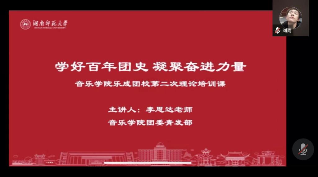 (通讯员 郑歆诺 刘雨 夏萱)3月7日中午,音乐学院乐成团校2021-2022学年第二次理论培训课通过线上腾讯会议举行。团委青发部负责人刘雨担任本次活动的主持人,团委负责人李思达老师担任主讲人。21级本科生及20级各班主要学生代表共同参与学习。