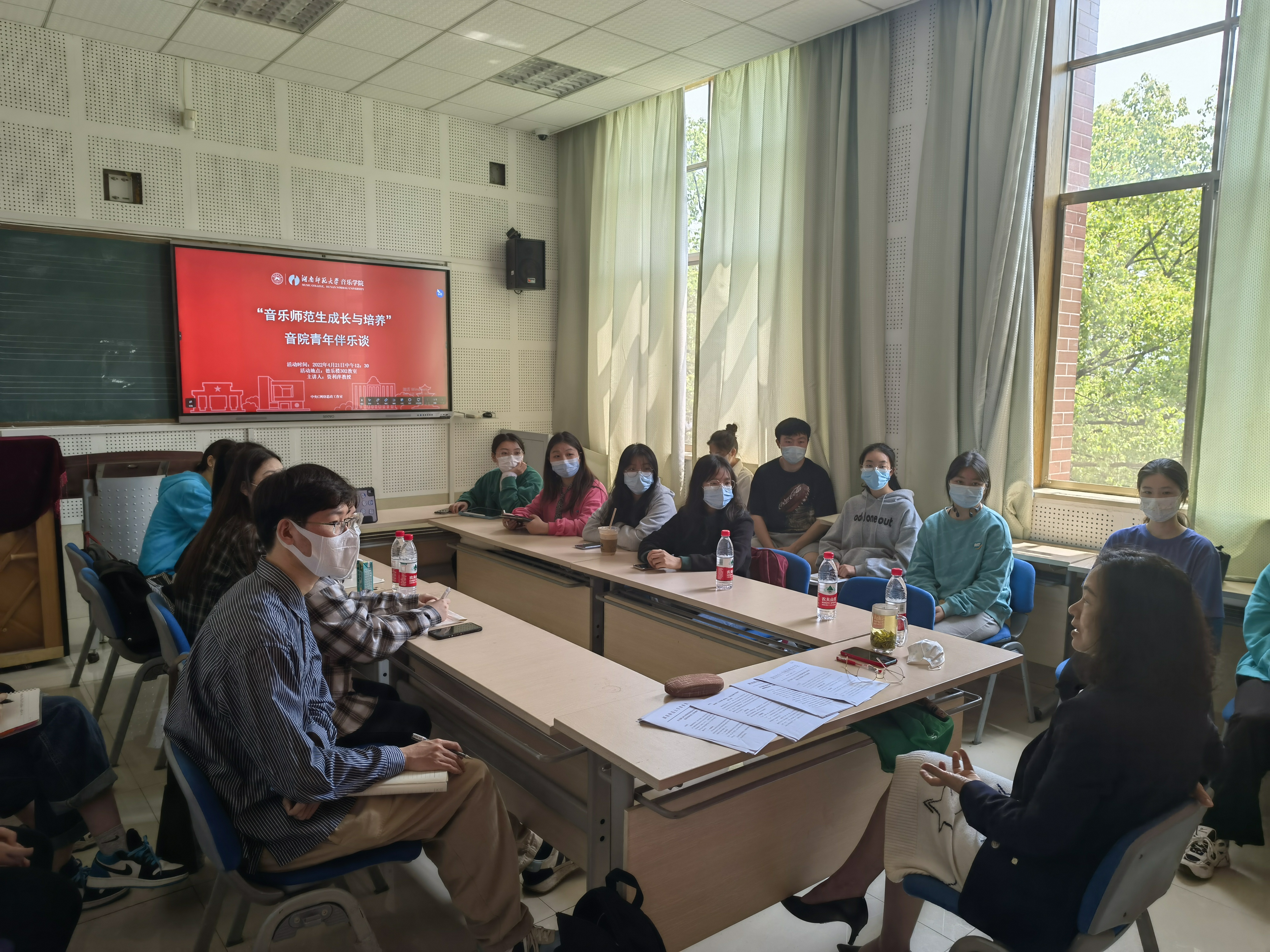 (通讯员 左璐 杨婉娴)4月21日中午,“音乐师范生成长与培养”音院青年伴乐谈活动于音乐学院德乐楼302教室开展,出席活动的有音乐学院副院长资利萍,各年级音乐学专业学生代表参加此次活动,活动的主讲人是副院长资利萍。