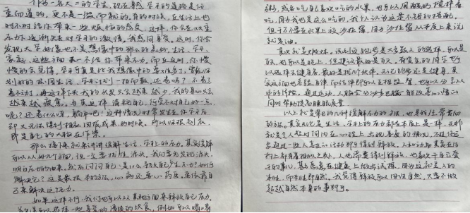 本次活动围绕“一笔一划,书写芳华”谱写青春历程和“朗朗悦耳,声声入心”朗读音频录制两个部分展开, 活动形式分别为用书写的方式倾诉烦恼或分享释放压力的方法和用录制音频的方式朗读内容积极乐观的文字。在此次活动中,音乐学院学子踊跃参与,提交了许多优秀的作品,也提供了很多在学习生活中正确释放压力的方法,让同学们受益匪浅。