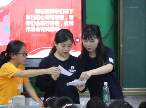 活动中,盛美佳慧带领全体同学观看抗美援朝英雄人物视频,重点讲述英雄人物邱少云的英勇事迹,让同学们感受到了历史人物对祖国统一的殷切愿望和对国家的赤胆忠诚。随后杨奕锋带领大家学习红歌《我爱北京天安门》,并朗诵诗歌《少年中国梦》,通过歌唱和朗诵的形式,让红色基因在同学们心中生根发芽。实践团成员组织同学们记录了此次宣讲会中所得出的感想,帮助同学们了解历史英雄事迹,并进行评比,给予奖励。