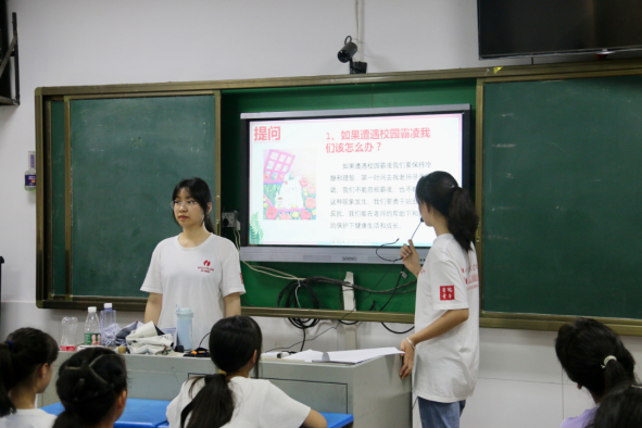活动伊始,刘睿通过游戏环节,引导学生诉说近期心中的烦恼并进行心理疏导,增强师生间的情谊。随后方思琳围绕父母关系、校园霸凌和同学矛盾三个主题展开提问,并提供参考意见,帮助学生学会换位思考,从不同的角度看待问题,平衡自身心态。最后,两位主讲人根据青少年中常见的心理问题给出相应的调节方法,根据课后反馈,学生表示此类方法十分有效,心理压力得到了很好的舒缓。