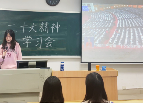 (通讯员:余秋蓉 付亓 柳紫依)2022年10月16日上午,湖南师范大学音乐学院学生会于和乐楼106组织开展二十大精神学习会。会上,音乐学院学生会全体成员统一观看了中国共产党第二十次全国代表大会开幕会,学习习近平总书记的重要讲话内容。