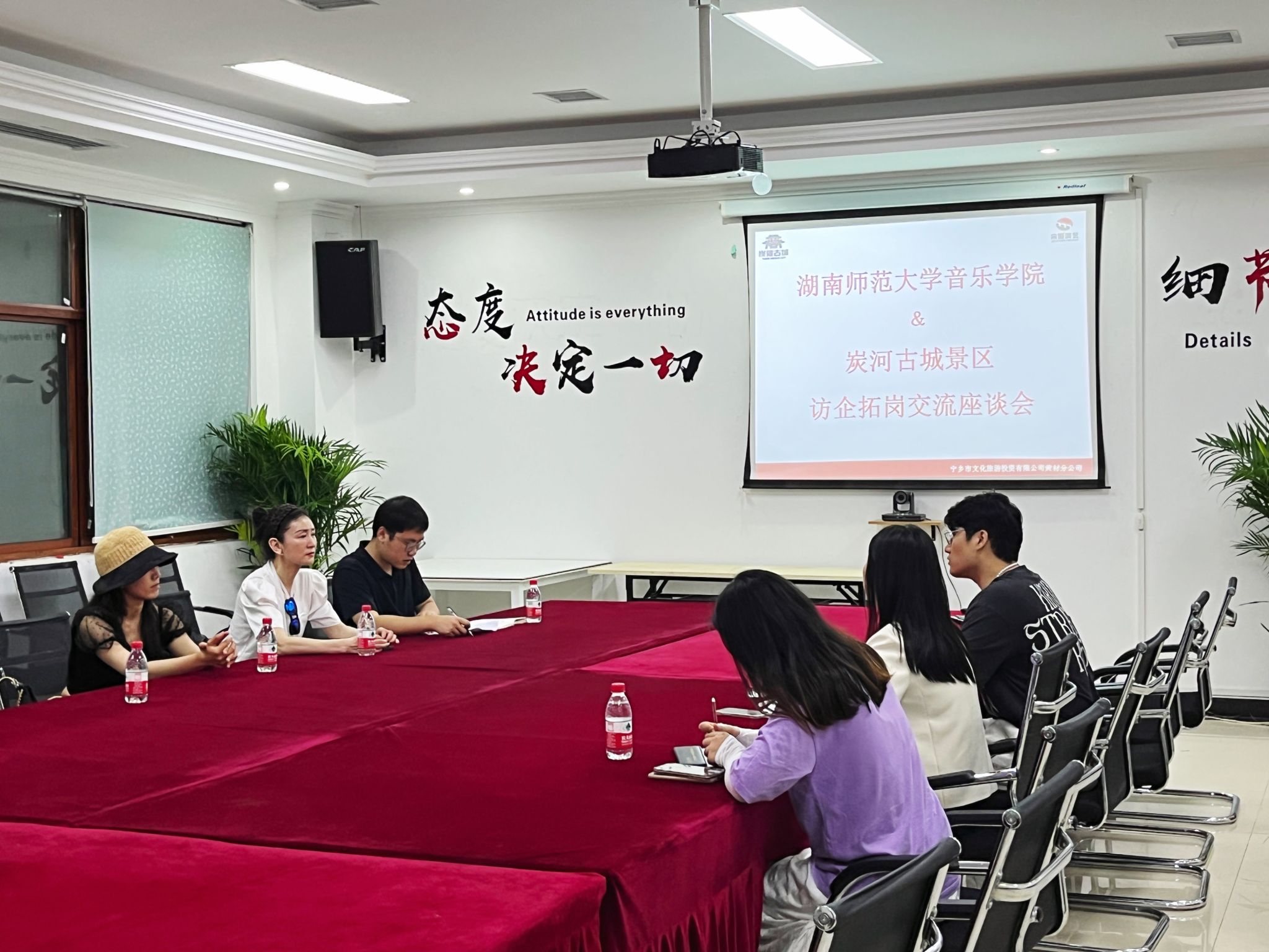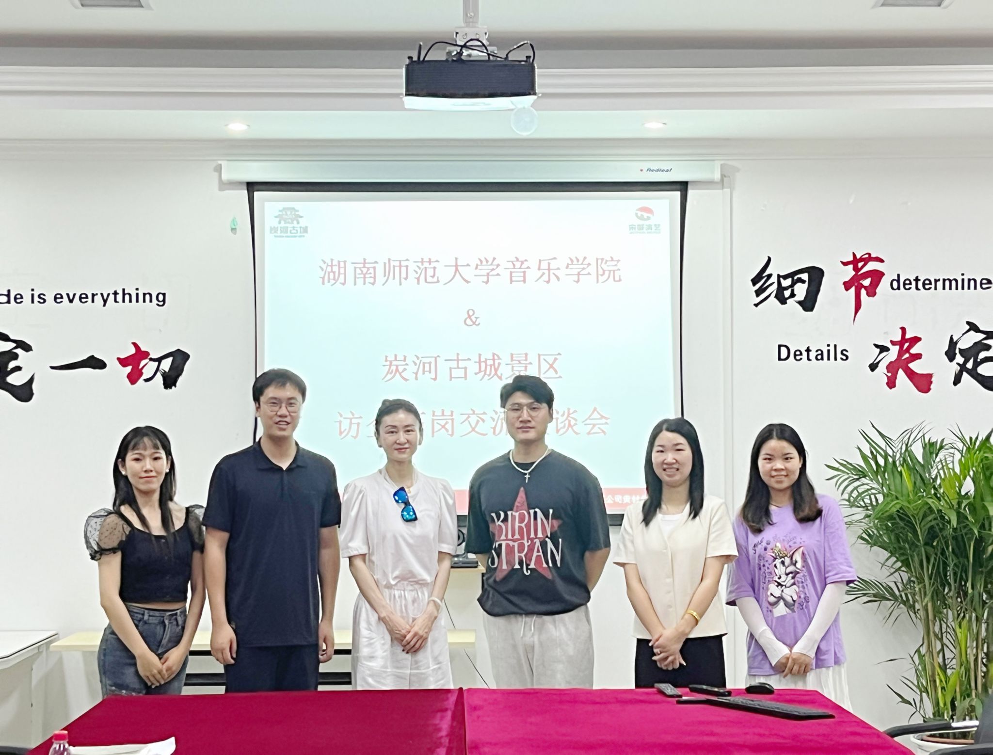 (通讯员 潘思雨) 5月4日下午,音乐学院舞蹈系主任陈鸿、2019级辅导员张行带队赴宁乡市炭河古城景区开展访企拓岗促就业活动。在炭河古城景区团长刘飞、行政人事部主管罗信、接待部主管刘怡的陪同下对工作环境进行实地考察。随后举行了访企拓岗交流座谈会,刘飞对于炭河古城景区的规模、考核机制、用人计划三个方面进行了详细介绍,并且介绍了毕业生在炭河景区舞蹈艺术团的发展前景。陈鸿也从音乐学院的办学特色、专业设置、人才培养以及本届毕业生基本情况进行了详细介绍,并对炭河古城景区舞蹈艺术团的发展理念、管理机制、企业文化表示赞同,并希望双方能够进一步合作交流,实现共赢。随后双方关于建设实践基地、就业基地进行深入交流,最后合影留念。
