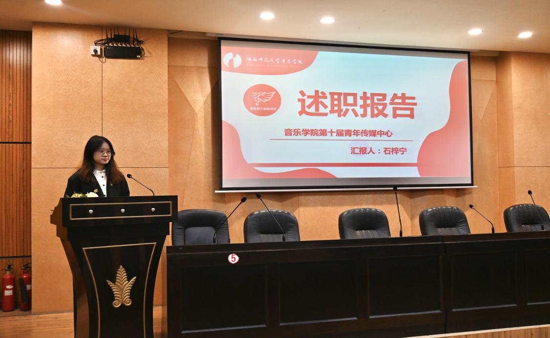上一届团学组织各负责人汇报工作。曹艺婷、余秋蓉、刘雨、石梓宁四位同学分别就三会一中心本年度的工作作出总结与反思。