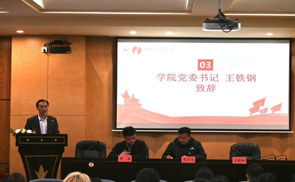 学院党委书记王铁钢致辞。他回顾过去一年以来音乐学院在团学工作中取得的成绩,并指出本次大会的主要任务是认真总结上一届团学工作,听取并审议工作报告,选举产生新一任委员,为新一轮团学组织建设奋楫扬帆。此外,他对全体团员学生代表们提出了三点希望:一是要保持初心、延续传统;二是要强化意识、提高素质;三是要勇于担当、敢于追求。他希望音院青年们能够以党的二十大精神为指导思想,心怀梦想又脚踏实地,敢想敢为又善作善成,立志做有理想、敢担当、能吃苦、肯奋斗的新时代好青年。