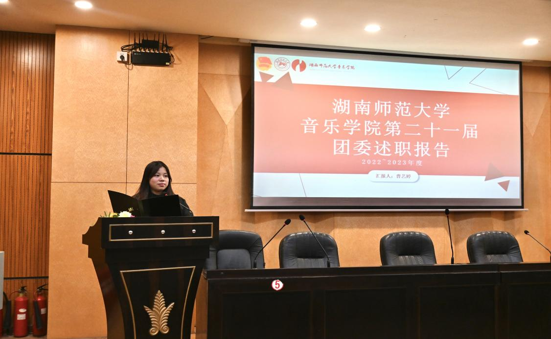 (通讯员 喻婧 唐基媛 高心爱)2023年11月20日中午12:30,音乐学院第二十二次团员学生代表大会于和乐楼108报告厅召开。校团委书记陈天嵩、音乐学院党委书记王铁钢、院党委副书记牟洋出席此次会议。大会由音乐学院团委书记、2022级辅导员李思达主持。