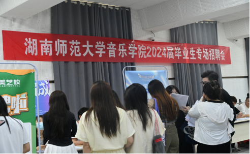 (通讯员 游紫妍)6月14日下午,音乐学院在舞蹈楼101举办了毕业专场招聘会,吸引了众多音乐类应届毕业生参与。