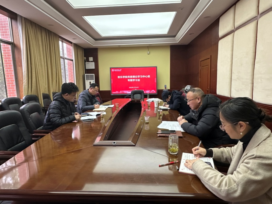 (通讯员 肖瑞 沈佳玲)2025年2月24日,音乐学院党委理论学习中心组在德乐楼二楼会议室开展2024年度民主生活会会前集中学习研讨,专题学习习近平总书记关于党的建设的重要思想、关于党的自我革命的重要思想以及关于加强党的纪律建设的重要论述等,研究部署学院全面从严治党与师德师风建设工作。学院党委书记王铁钢主持会议,全体党委委员参加学习。