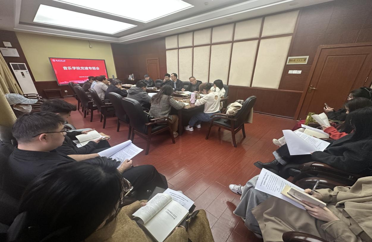 (通讯员 肖依雯 冯子萱)2025年3月28日,音乐学院在德乐楼二楼会议室召开党建专题会议,部署启动深入贯彻中央八项规定精神学习教育,学习贯彻习近平总书记关于党的作风建设的重要论述,传达学习《中共中央办公厅关于在全党开展深入贯彻中央八项规定精神学习教育的通知》《中共湖南师范大学委员会关于开展深入贯彻中央八项规定精神学习教育的实施方案》要求,审议通过《中共湖南师范大学音乐学院委员会关于开展深入贯彻中央八项规定精神学习教育的工作方案》。音乐学院党委书记王铁钢主持会议并讲话,党委班子全体成员及全体支部书记参加会议。