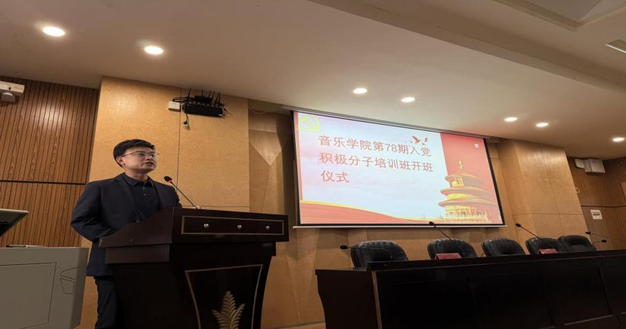 (通讯员:张定己 杨元奇)2025年4月25日中午,音乐学院第78期入党积极分子培训开班仪式在和乐楼108教室举行。音乐学院党委书记王铁钢、党委副书记牟洋出席仪式。