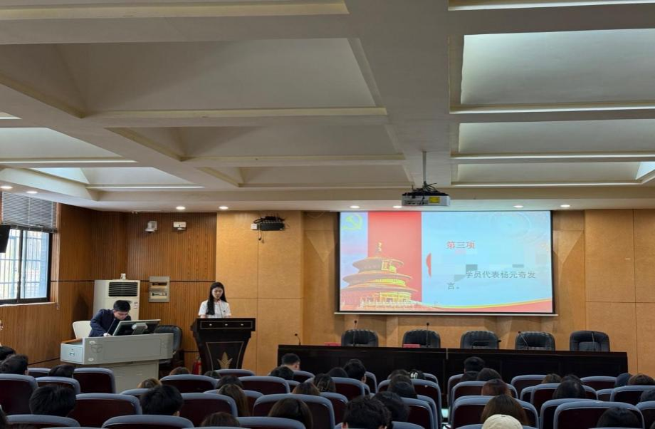 2024级本科生入党积极分子代表张定己发言。他回顾党的百年奋斗历程,结合湖南省的红色基因与岳麓山、橘子洲头的革命传统,并立足自身专业,强调音乐创作需扎根人民、服务社会,承诺以党员标准投身社会实践,通过艺术实践锤炼本领,用艺术传递党的声音,践行“与人民同呼吸、共命运”的初心。