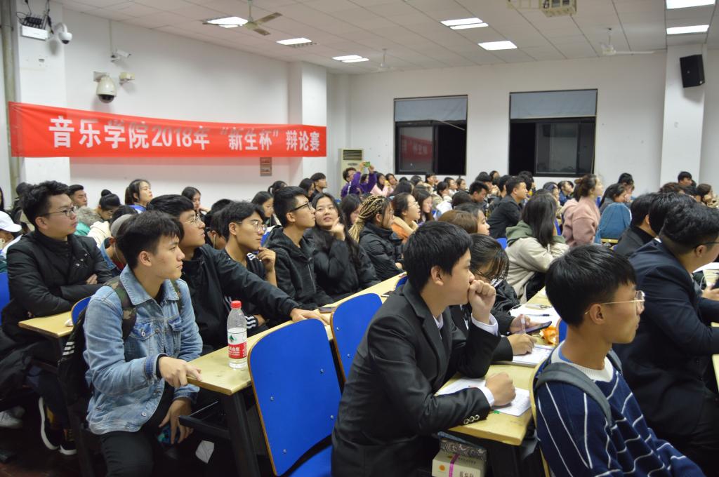 11月14日晚,音乐学院在和乐楼308教室举行2018级“新生杯”辩论赛,此次辩论赛由学生社团联合会举办。学工办老师李思达、胡钰琬出席此次辩论赛。