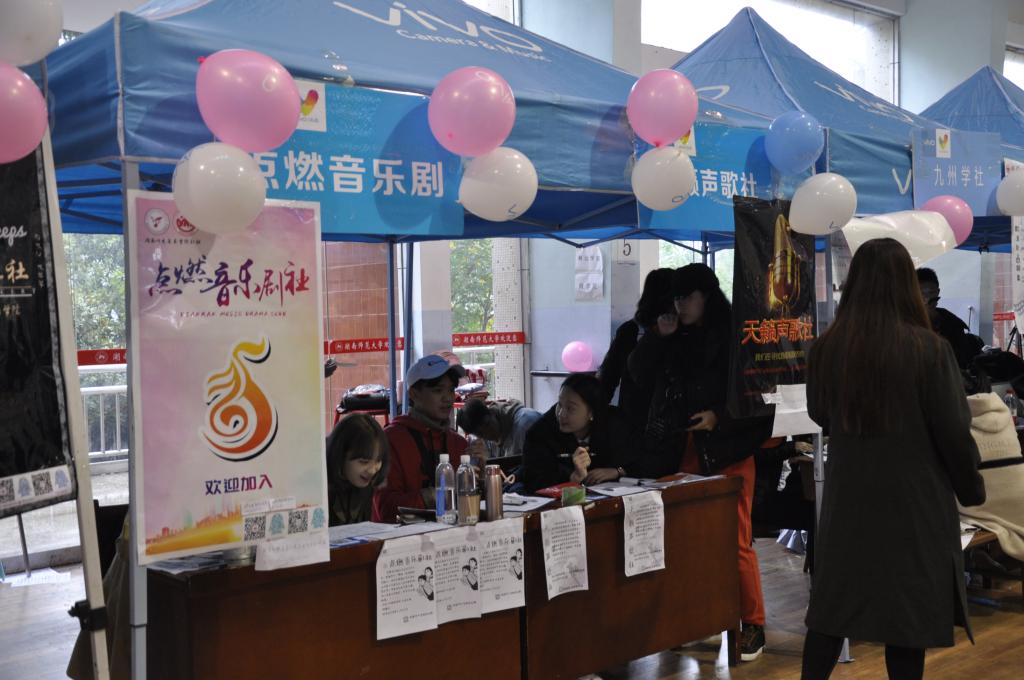 11月10日,由湖南师范大学学生社团联合会举办的“百团大战”在北院体育馆以及南院篮球场举行。