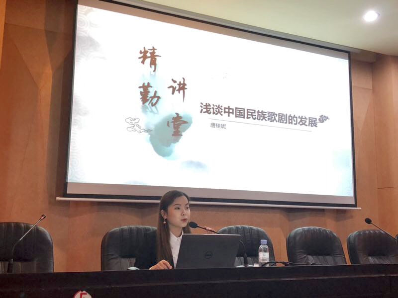 11月6日晚,“浅谈中国民族歌剧的发展”精勤讲座在音乐学院和乐楼108举行,此次活动由音乐学院团委青年创新创业工作部举办,2016级音乐学二班唐佳妮担任主讲人。