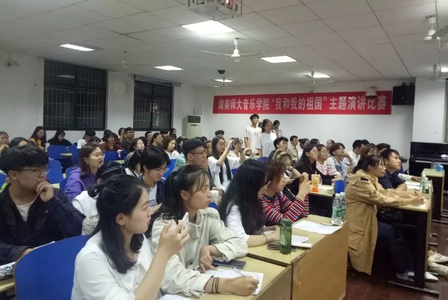 (通讯员 胡钰琬 姜金玉)2019年10月10日晚,“我和我的祖国”演讲比赛于音乐学院和乐楼208举行。2018级辅导员李思达、2016级辅导员戴霁斌、2017级辅导员胡钰琬、2019级辅导员张行和二十名学生代表担任评委,音乐学院各级共十五名同学参加了此次比赛。