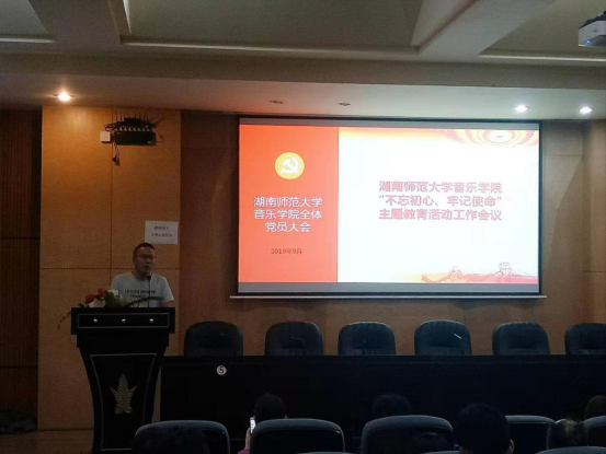 2019年9月20日下午,音乐学院“不忘初心,牢记使命”主题教育工作会议在和乐楼108会议室召开。音乐学院全体师生党员参加了会议,会议由副院长贺南辉主持。