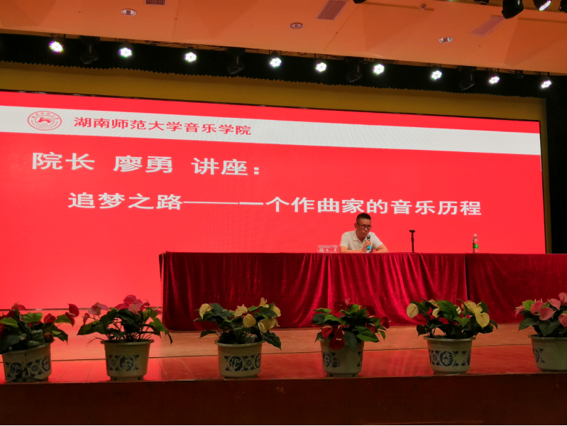 2019年9月9日下午,音乐学院名师讲坛首次开讲,院长廖勇在和乐楼大音乐厅为2019级全体新生做了题为 “追梦之路—— 一个作曲家的音乐历程” 的专题讲座。