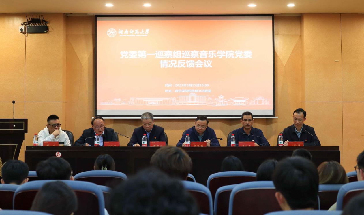 根据湖南师范大学党委巡察工作统一部署,2023年3月15日下午,湖南师范大学党委第一巡察组向音乐学院党委反馈巡察情况。校党委副书记、党委巡察工作领导小组副组长周俊武,校党委委员、副校长刘怀德,党委巡察办专职副主任佘利忠,党委第一巡察组组长何扬波出席会议,王铁钢主持会议。