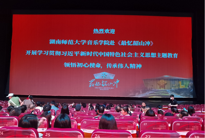 首先,全体教师党员一起观看了由张艺谋导演的实景片《最忆韶山冲》,演出围绕“诗音光影铸魂、红色文化育人”展开,通过一首首耳熟能详的毛泽东诗词、红色歌曲和舞蹈等串联起伟人毛泽东的故乡情怀和波澜壮阔的革命生涯。在这场红色记忆与高科技融合的视听盛宴中,党员同志们感受到了伟人毛泽东坚定的革命信仰和无私的奉献精神。