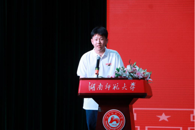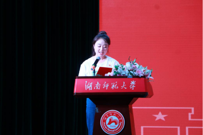 2020级本科生谢意作为老生代表发言,她结合自身在校任职情况和求学经历,与学弟学妹们分享自己成长路上的宝贵经验,总结为“一个目标、两份热情、三种美好”;并鼓励新生勇于探索、不懈奋斗,不负师大好风光、不负青春之绚丽姿态。