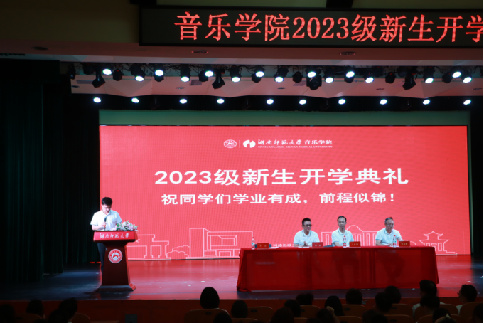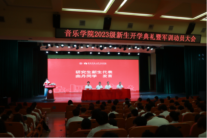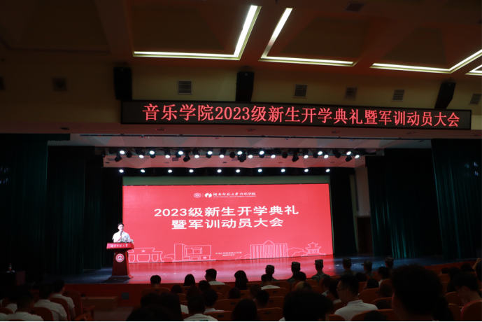 (通讯员 邹芷珂 颜周瑶 张硕)告别盛夏的流火,承迎金秋的飒爽。2023年9月16日下午14:30,湖南师范大学音乐学院2023级新生开学典礼暨本科生军训动员大会于和乐楼大音乐厅举行,音乐学院院长廖勇、党委书记王铁刚、副院长贺南辉出席本次典礼,各年级辅导员、教师代表及全体新生参加。典礼由党委副书记牟洋主持。
