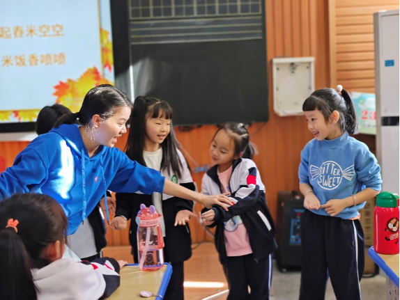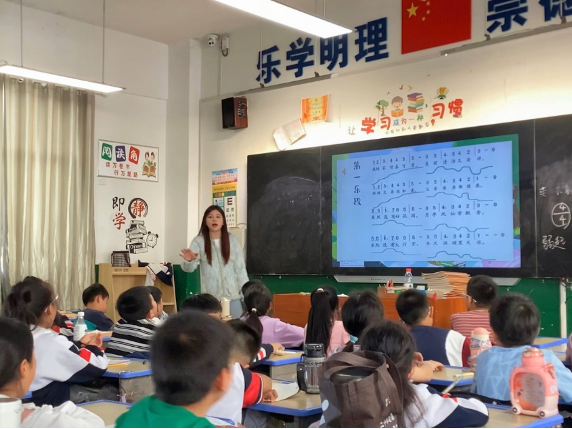 活动中,向华副教授以“关于小学民歌教学的几点思考“为主题、张忻教授在舞蹈教室开展体态律动培训,为当地乡村教师提供了教学新思路。我校学生在桑梓镇中心小学、上渡街道白沙洲学校为不同年级的小学生进行小学音乐常规课程的教学及社团授课。授课过程中,我校学生不断地根据孩子们的实际情况调整教学方法,在师生互动、生生互动、师师互动中提升教学能力。“你们带来了不一样的音乐课堂,孩子们非常乐意参与到音乐课堂中去,课堂氛围好,孩子学习效率高!”桑梓镇中学的音乐教师这样说。