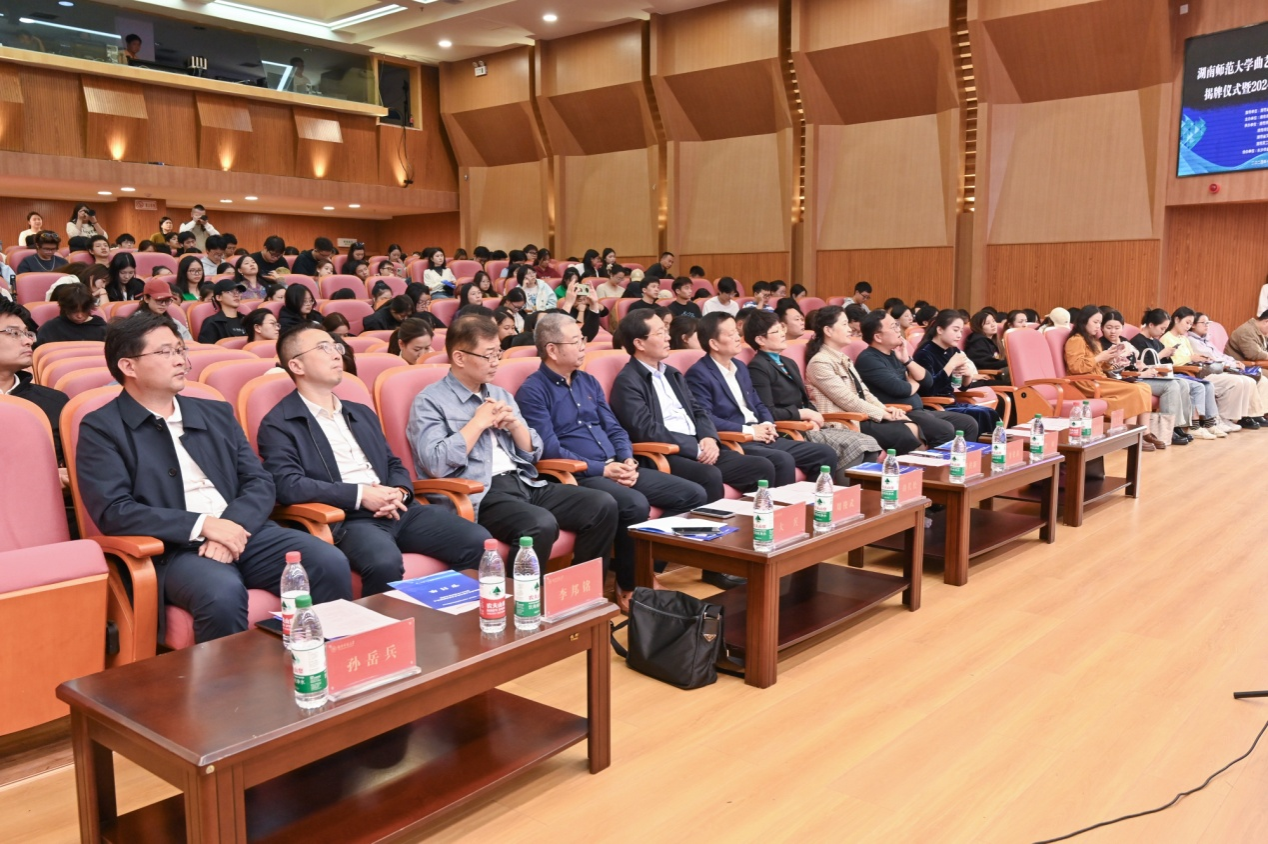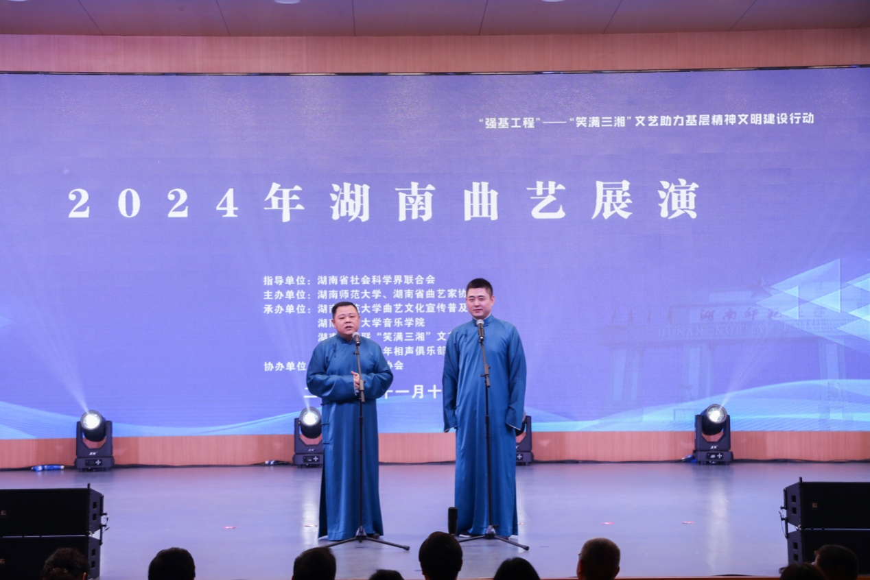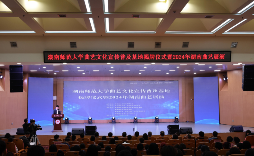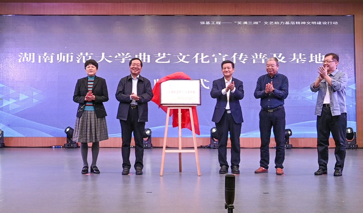 11月11日,湖南省社科普及基地湖南师范大学曲艺文化宣传普及基地揭牌仪式暨2024年湖南曲艺展演在我校音乐学院举行。省社科联党组书记、副主席胡代松,副主席贺建湘,我校党委书记、欧洲科学院院士蒋洪新,党委副书记周俊武出席会议。