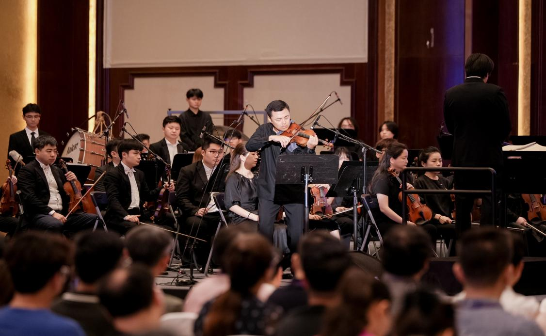 随后,由学院名誉院长赵季平创作的《第一小提琴协奏曲》在音乐会上震撼上演,学院教授柴亮担任小提琴独奏。柴亮以其卓越的演奏技巧和对作品的深刻理解,将小提琴的旋律线条与乐队的交响织体完美融合,时而激情澎湃,时而细腻委婉,淋漓尽致地展现了作品的戏剧性与感染力。