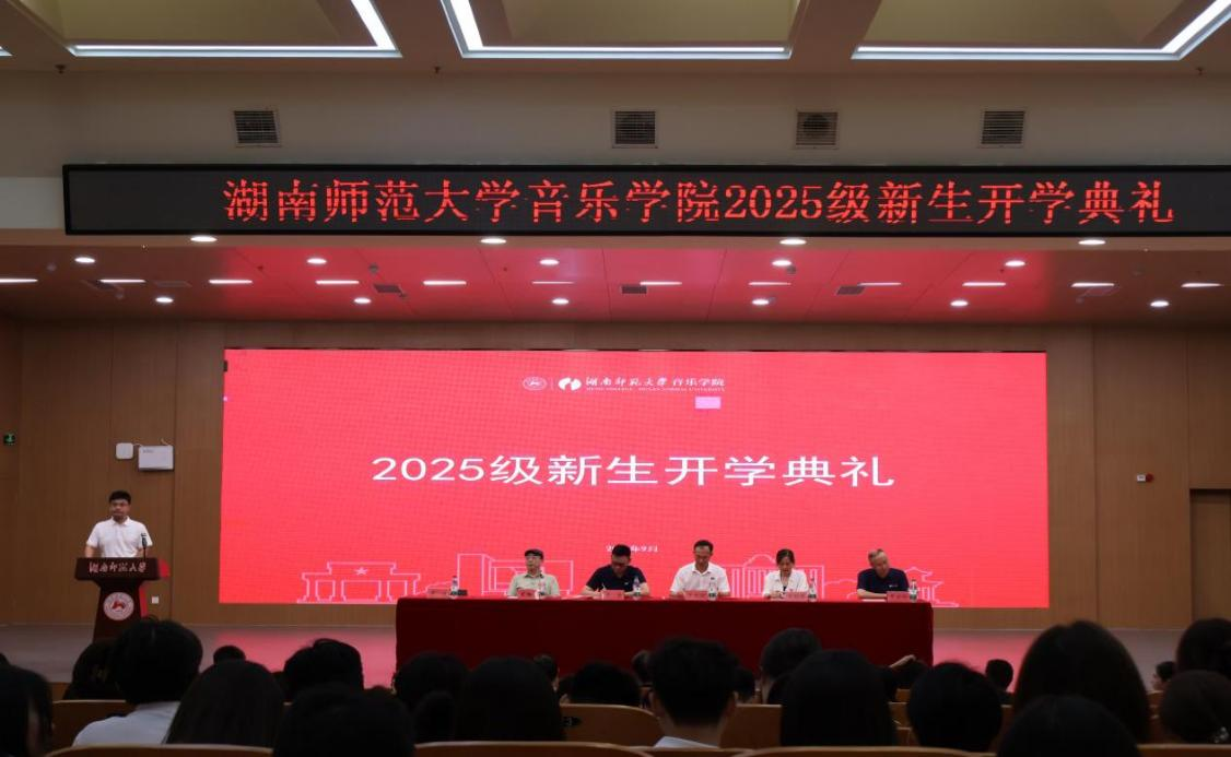 (通讯员 罗欣欣 卿裕晞 张定己)2025年9月16日下午14:00,湖南师范大学音乐学院2025级新生开学典礼在大音乐厅举行。院长廖勇、党委书记王铁钢、副院长资利萍、贺南辉出席,教师代表与全体新生参加。典礼由党委副书记牟洋主持。