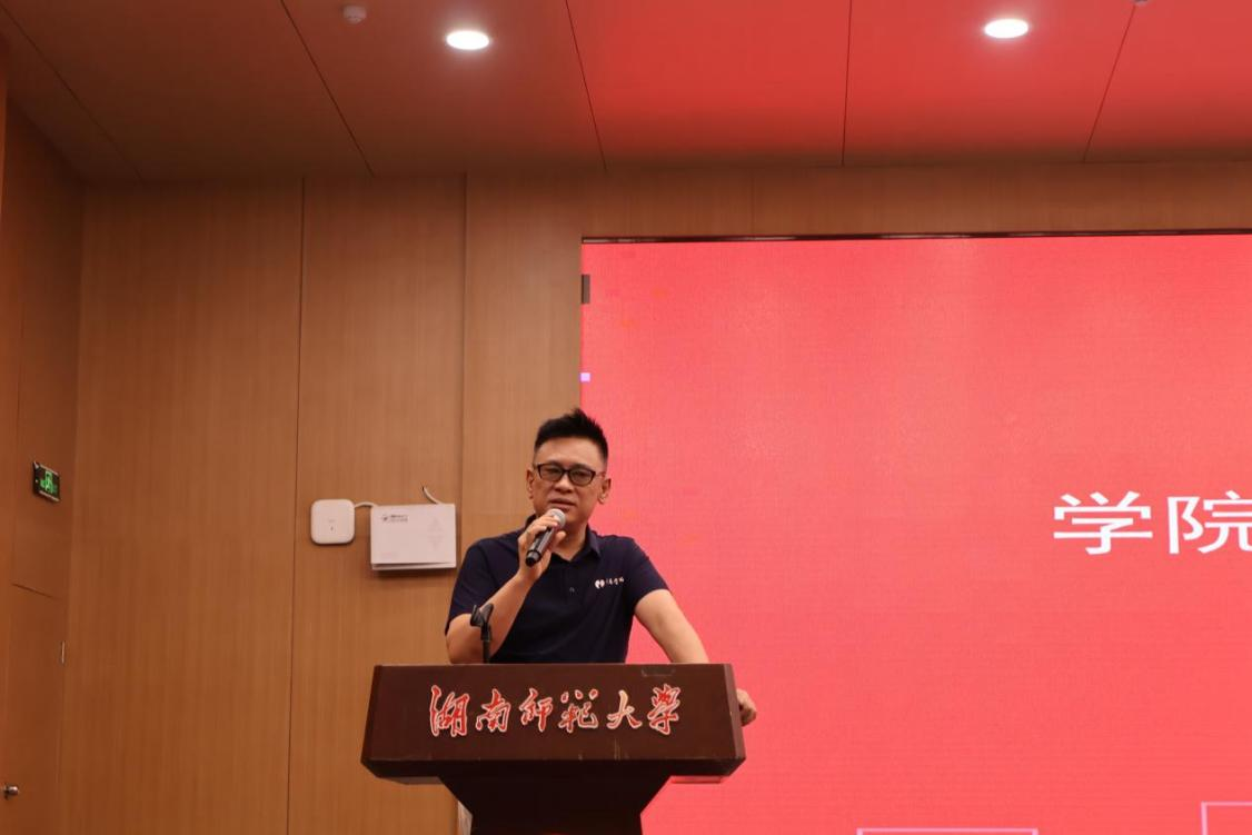 院长廖勇发表致辞,他围绕新生的专业成长与未来发展发表了讲话。他寄语新生,在学院学习期间既要扎实掌握艺术领域的共性知识与技能,打牢专业基础,也要挖掘自身特点与优势,探索独特的艺术风格;同时鼓励新生提前规划学业与未来,明确目标、提升综合素养,努力成长为全面发展的音乐人才,以积极应对行业机遇与挑战。最后,他祝愿新生始终保持学习热情、专注态度与艺术热爱,勇敢追逐梦想,携手共进。
