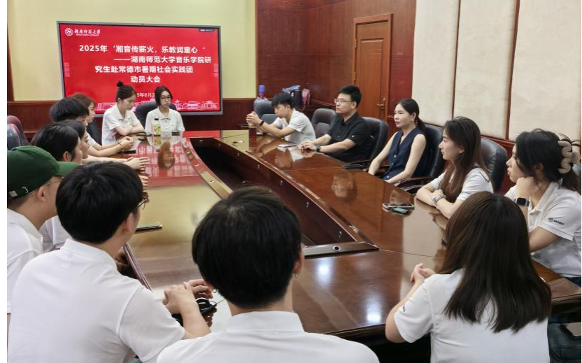 (通讯员:冯子萱 )6月27日上午,湖南师范大学音乐学院在德乐楼二楼会议室召开2025年研究生暑期社会实践动员大会。 学院党委副书记牟洋出席会议并作动员讲话,研究生办公室主任张珊珊主持会议,研究生赴常德市暑期社会实践团队全体成员参会。