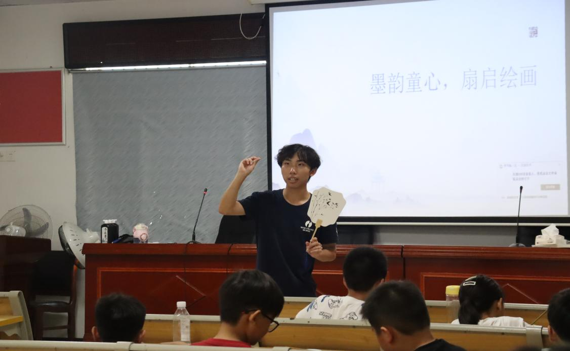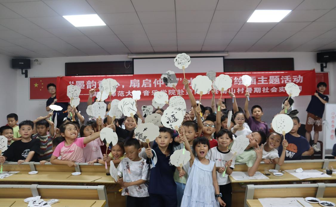 (通讯员 周慧娴 胡橼橼 石妹爱)传统书画艺术凝聚着中华文化的精髓,积淀着民族独特的审美与智慧。为了让南山村孩子们真切感受笔墨间的文化张力,提升文化感知力与艺术素养。7月11日下午,音乐学院“乐见南山”——赴益阳市南县南洲镇南山村暑期社会实践团开展了以“墨韵童心,扇启绘画”为主题的水墨书画活动。实践团成员赵晨熠担任此次活动的主讲人。