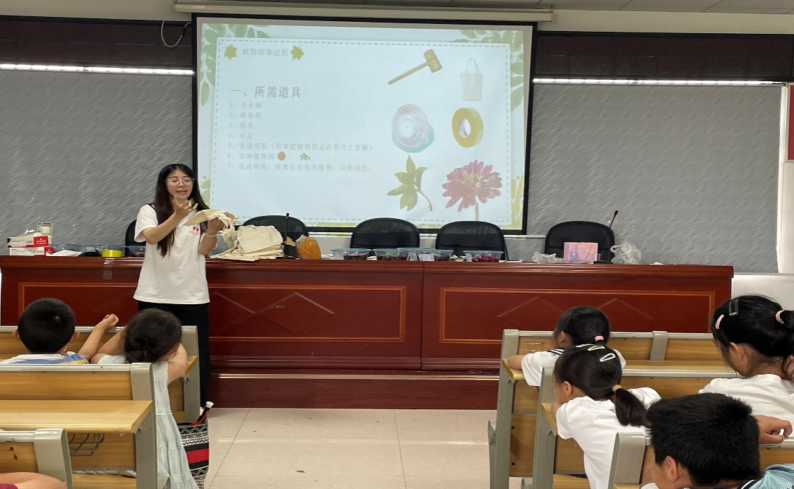 主讲人吕沛霖在为孩子们讲解拓染