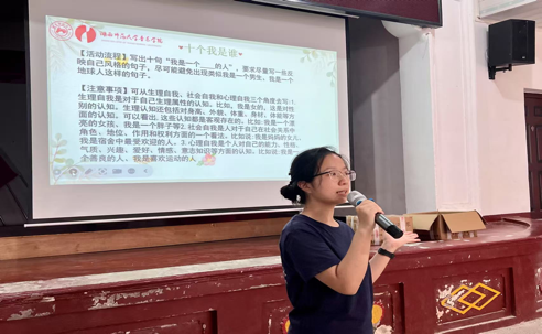 此次活动以三个趣味游戏展开,旨在让孩子们在轻松的氛围中探索自我。“十个我是谁”环节,孩子们通过猜出动漫人物哪吒,学习从生理、社会、心理层面写下独特的自我描述,跳出标签认识最真实的自己;“我的手掌画”中,孩子们通过主动寻找新伙伴描摹手掌、互写夸赞与祝福,在互动中感受被认可的温暖;“关爱自我日历”则通过制作七月打卡表,培养孩子们记录日常小成就的自我关怀意识,让大家能在点滴记录中看见自己的成长。活动中还介绍了实践团特别设置的“解忧信箱”,为孩子们提供了一个倾诉烦恼、提出建议的渠道。活动尾声,实践团成员带领孩子们共同阅读绘本,让他们在温馨的故事中学会勇敢表达爱与感谢。