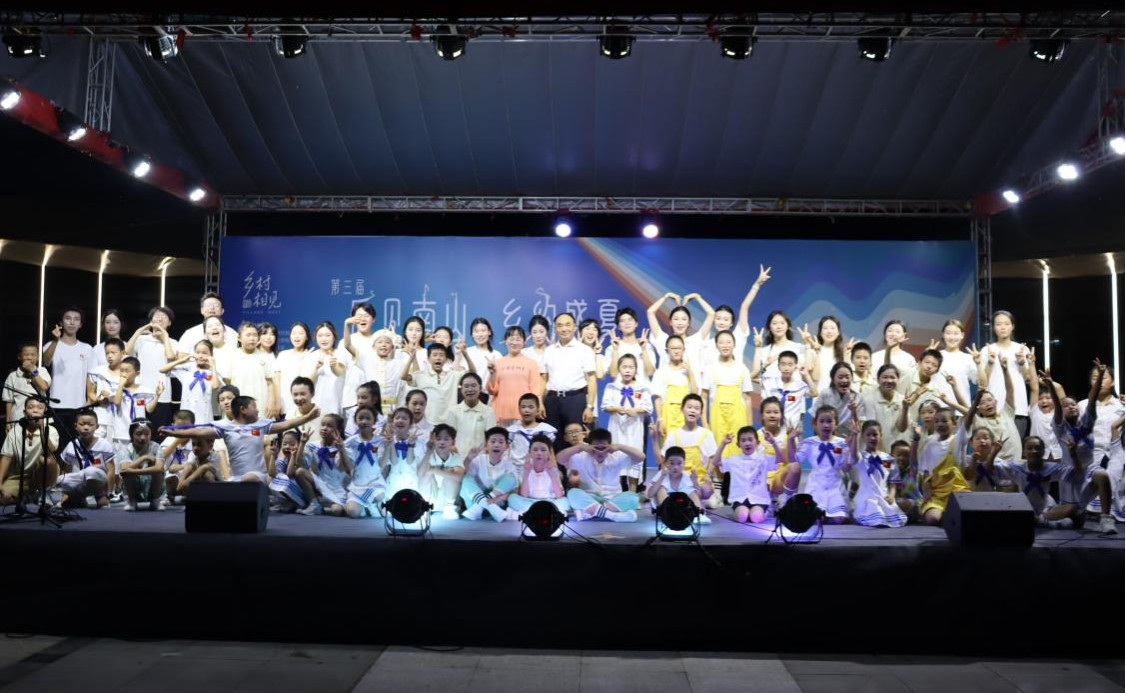当最后一个音符落下,晚会在大合影的欢笑声中圆满结束。这场音乐之夜,不仅是艺术的展演,更是乡村文化振兴的生动注脚。它让孩子们在舞台绽放光彩,让实践团的心血化作动人旋律,更让乡村的夏夜,因文化的滋养而格外璀璨。未来,这份对艺术、对乡村的热爱,也将如种子播撒,在南山村的土地上,孕育更多美好与希望 。