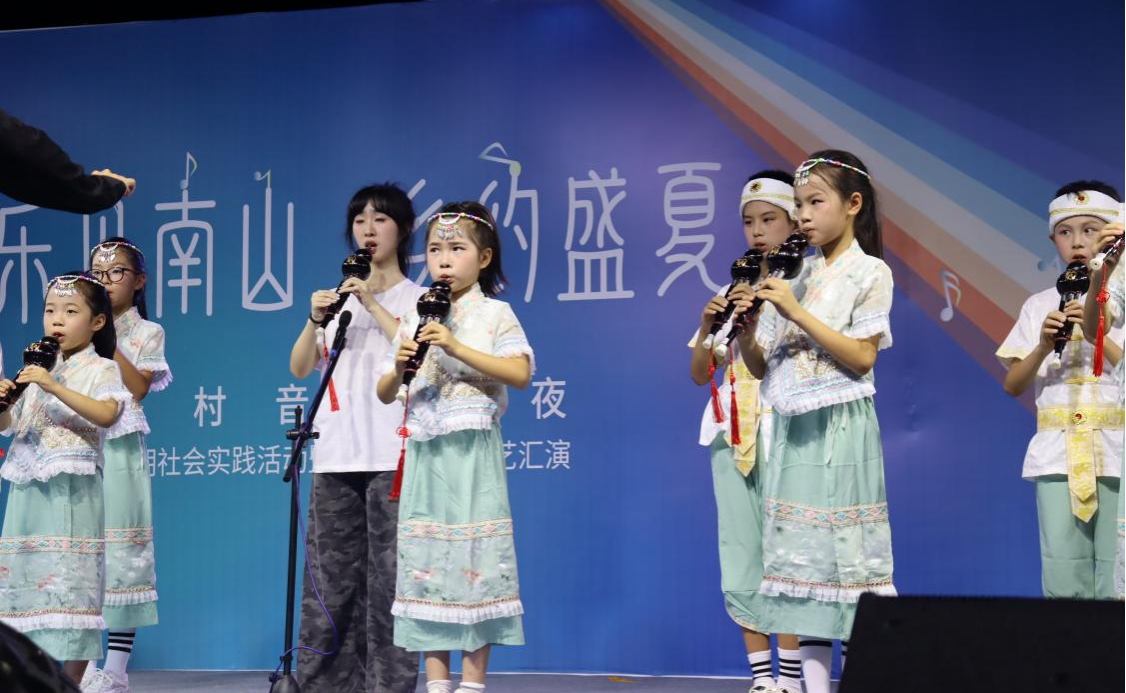 进入第三篇章“艺韵·逐梦启新程”,器乐组学员仅用15天便熟练掌握葫芦丝,以合奏《彩云之南》展现学习成果,丝缕乐音编织出云南的秀丽与灵动,诠释努力后的蜕变。随后,实践团成员带来器乐合奏《年轮》,竹笛、古筝、小提琴、钢琴交织,这是老师们合作的艺术契约,音符流转间,诉说着团队携手的创作故事。最后,湖南师范大学音乐学院“乐见南山”暑期社会实践团成员献上舞蹈串烧《爱乐之城》《我的未来式》,用动感舞姿为整场晚会注入青春活力,在逐梦氛围里收尾,让艺术逐梦的火种,持续照亮南山村的夏夜 。