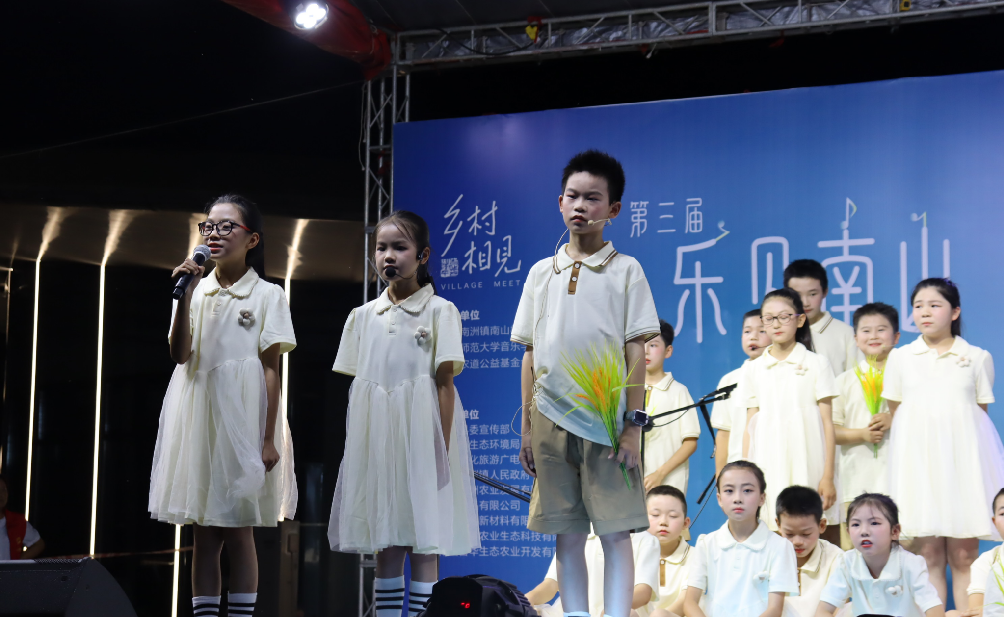 南山村党总支书记赵志祥登台致辞,他深情回顾湖南师范大学音乐学院师生志愿者连续第三年奔赴南县、扎根南山村的坚守,盛赞师生们克服距离与环境挑战,以专业教学、倾囊付出,为乡村孩子点亮艺术灯火的奉献。他向长期关注支持南山村文化振兴的社会各界致谢,强调乡村音乐之夜是夏令营成果的生动呈现,更是三年深耕后,南山村文化振兴迈向新阶的标志。赵书记期许这份夏日之约持续延续,让艺术交流成为南山村每年盛夏的文化名片,以艺术微光,照亮孩子们逐梦征途,见证乡村与青春携手成长的更多可能。